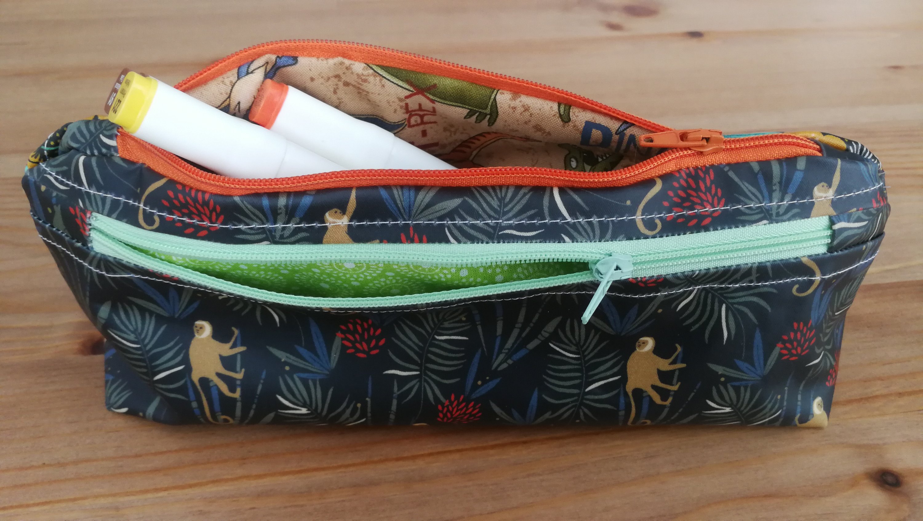 Ysaé l’attend depuis plus d’un an, cette trousse : il avait choisi les tissus et même commencé à tracer les pièces et à les couper en même temps que je réalisais la trousse pour l’anniversaire de sa cousine. C’est un modèle que j’avais également déjà réalisé quelques années plus tôt pour Sandro ici.