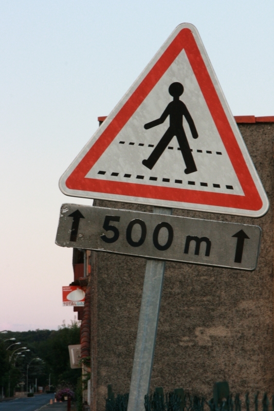 Et bien tu as peut-être juste traversé mais j’aime bien le côté très droit du bâtiment et le côté tordu de ce panneau.