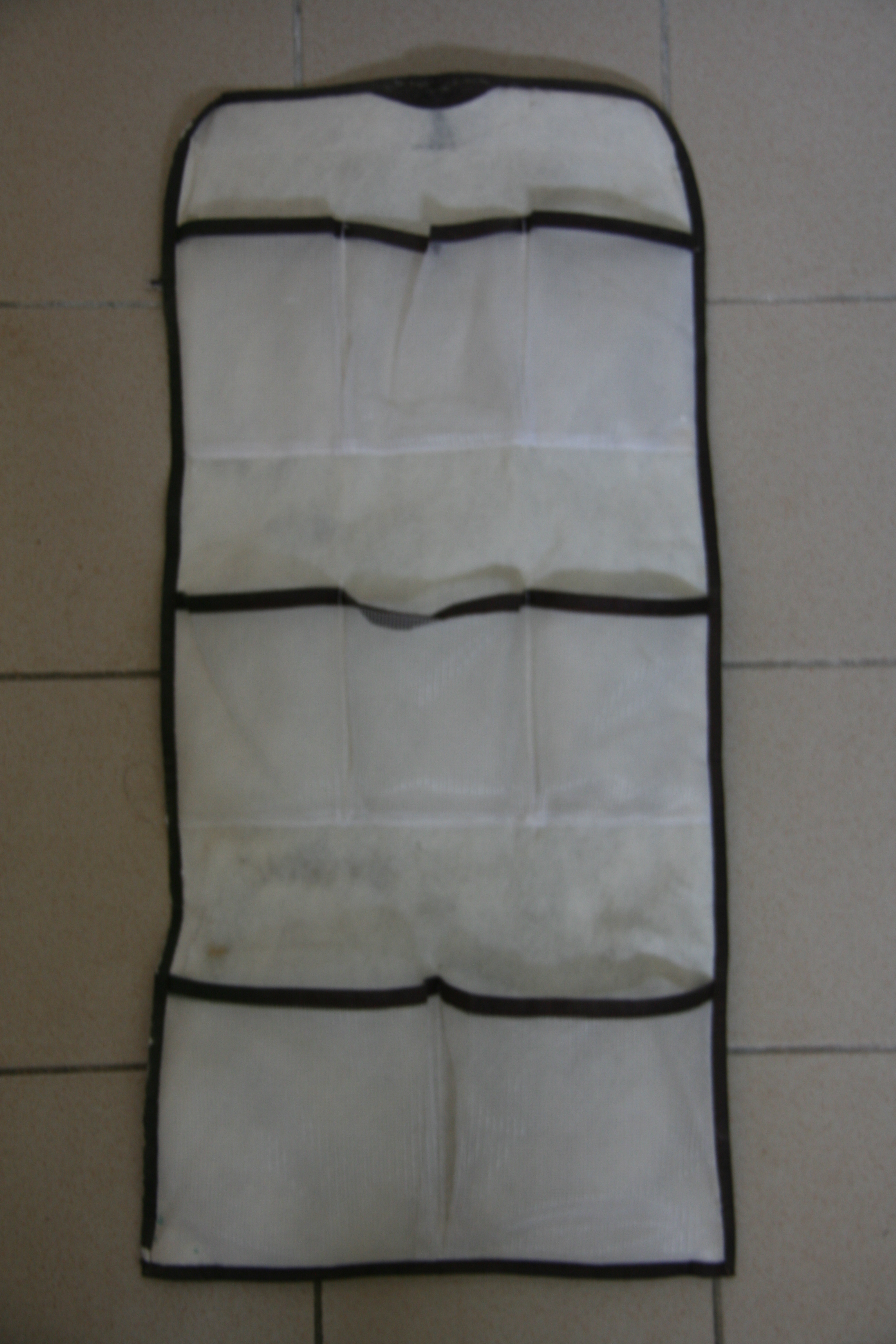 Bon, comme d’habitude, ce n’est pas parfait (par exemple, le haut du verso) mais c’est quand même plus joli que l’ancien, qui de toute façon s’était cassé. J’ai eu un peu peur du résultat quand je me suis rendu compte que j’avais oublié de faire des soufflets pour donner du volume aux différents compartiments, finalement, ça va quand même.