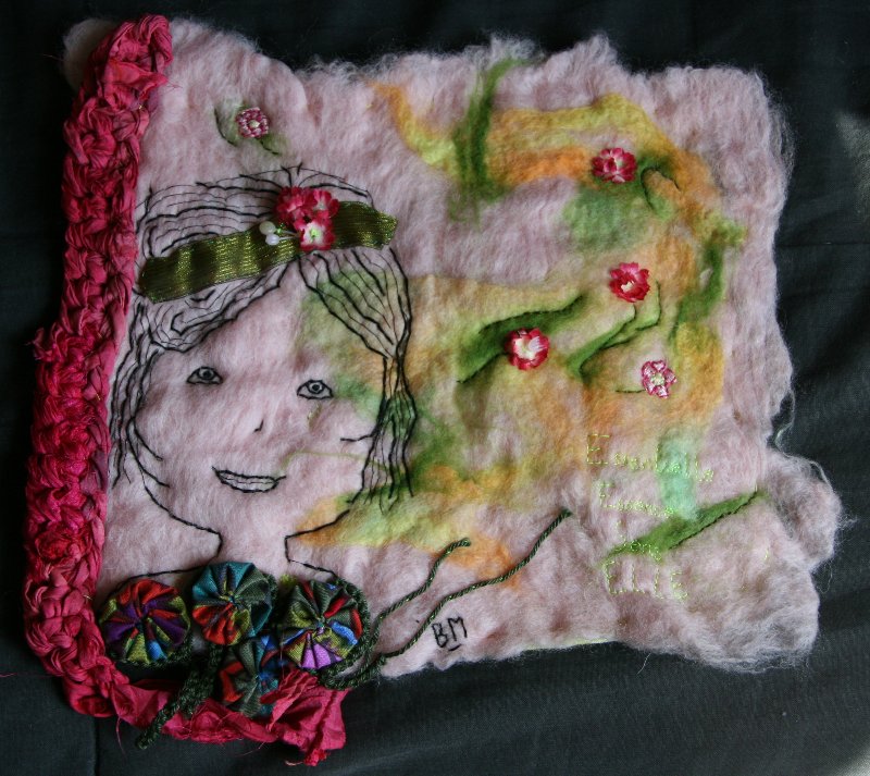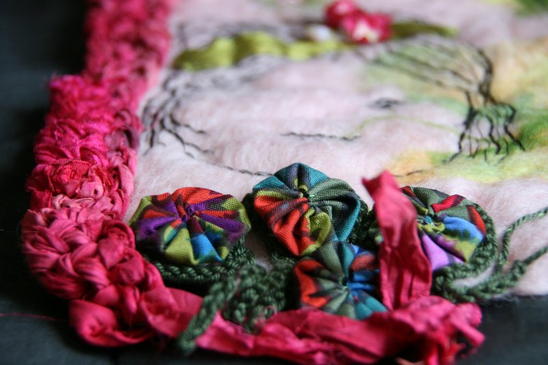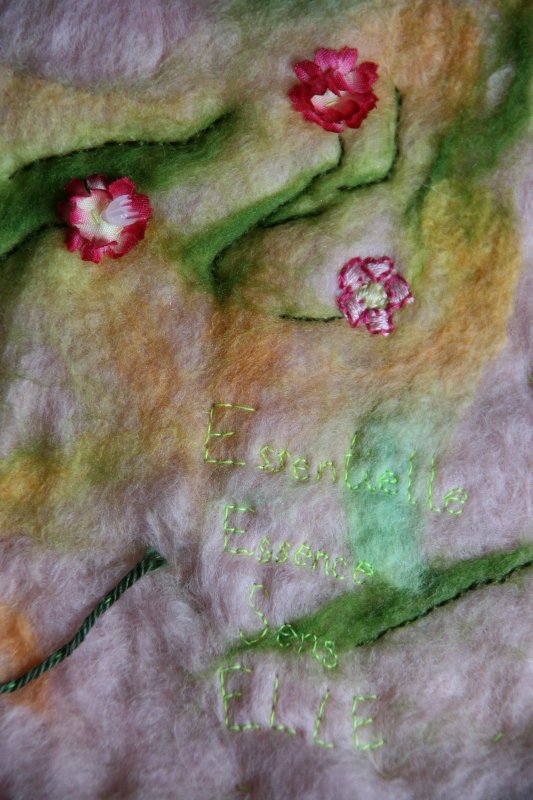 Maintenant, je vous laisse découvrir la création remplie de poésie qui a « provoqué » cette rencontre. Les photos parlent plus que ce que je pourrais le faire pour décrire la finesse des broderies, le subtil mélange des couleurs, des techniques et des matières :