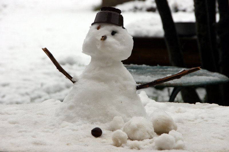 Ce petit bonhomme façonné ce matin a eu trop chaud cet après-midi, il n’est déjà plus. Seulement, comme j’avais une autre idée derrière la tête, je n’ai pas pensé à prendre en photo les différentes étapes de la fonte… Ça aurait pu faire un chouette triptyque pour illustrer le thème.