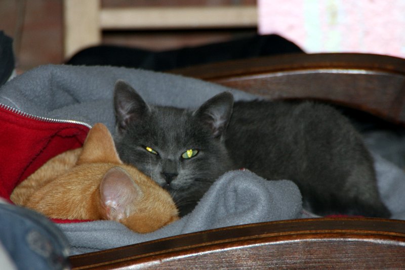Les chats blottis l’un contre l’autre dans une veste polaire :