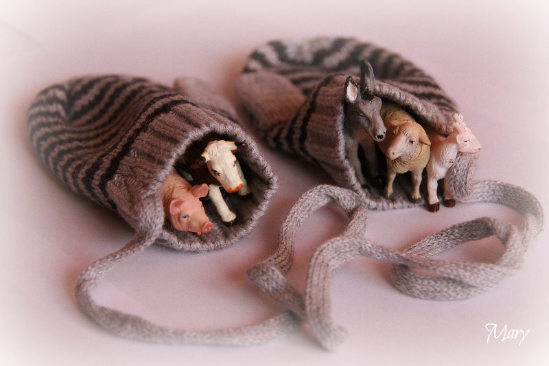 Vous connaissez l’histoire de « La Moufle » ? Cette histoire dans laquelle des animaux sauvages s’entassent au chaud dans une moufle égarée jusqu’à ce qu’elle craque ? Celles-ci n’ont pas craqué, les animaux sont retournés sagement dans leur bac ferme.