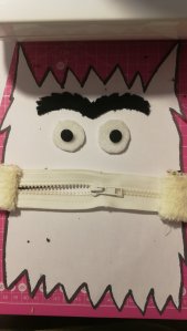 Ça a été le point de départ de mon projet de rentrée dans ma classe de MS-GS. Du coup, je me suis dit : « trop bien ! Je vais coudre un monstre mange-émotions, avec un ventre hublot pour voir comment il se sent« . Si vous ne connaissez pas l’album, au début de l’histoire le monstre est barbouillé (multicolore), il apprend ensuite à trier ses émotions qui ont différentes couleurs : jaune pour la joie, bleu pour la tristesse, rouge pour la colère, noir pour la peur, vert pour la sérénité et rose pour l’amour. Avec un hublot, on peut voir la couleur des objets qu’on lui fait manger et déterminer son état émotionnel.