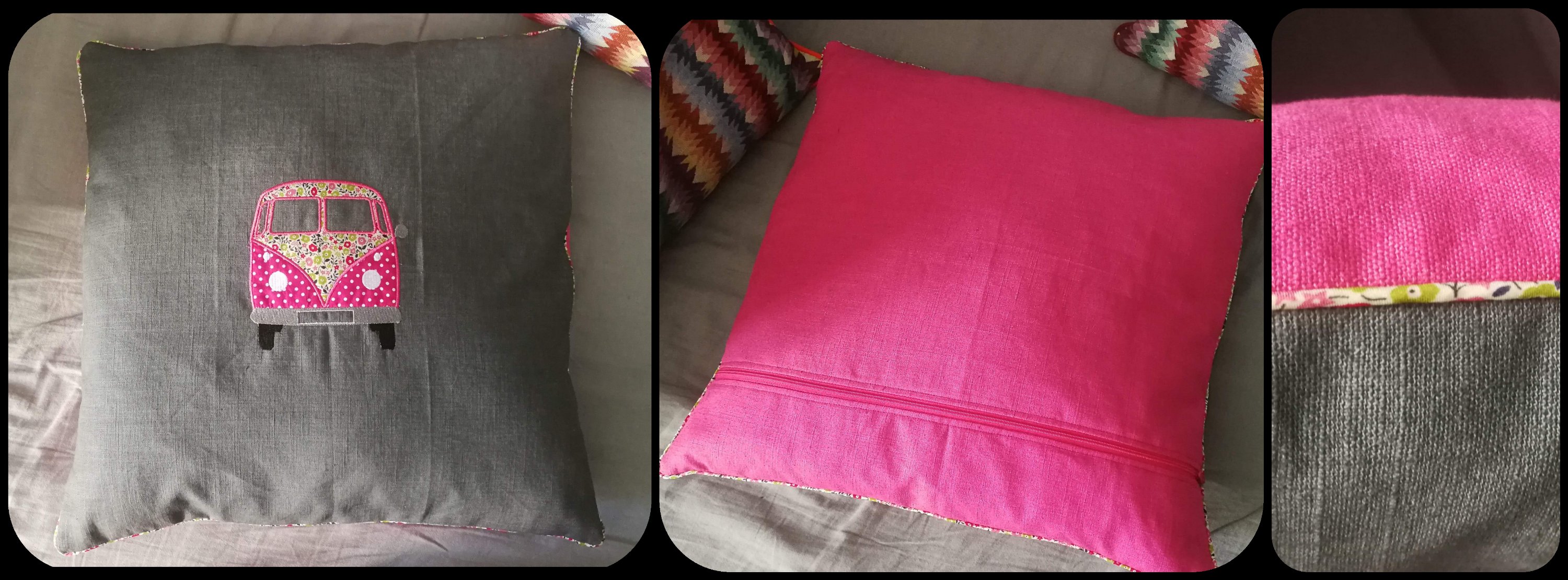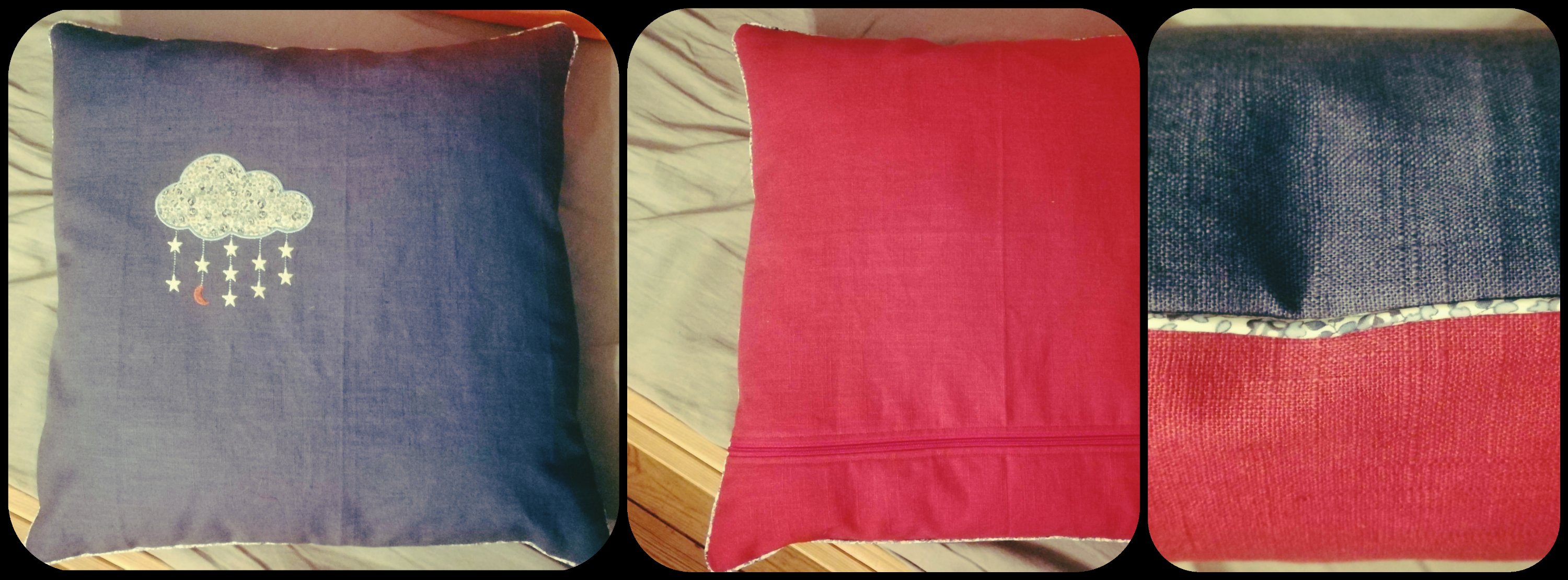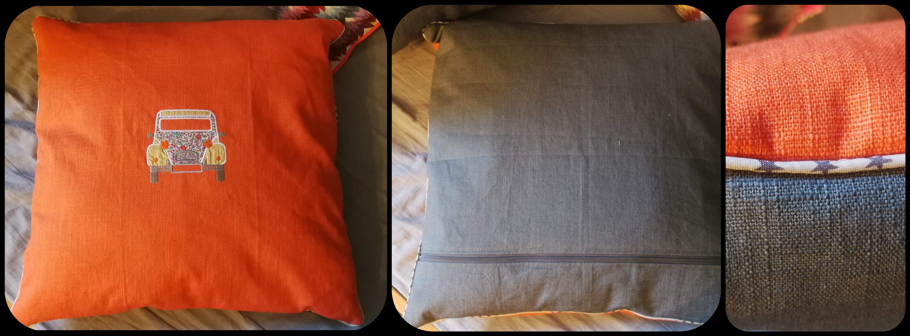Coupons en lin, avec appliqués brodés achetés il y a quelques années sur un site qui n’existe plus + passepoils + fermetures