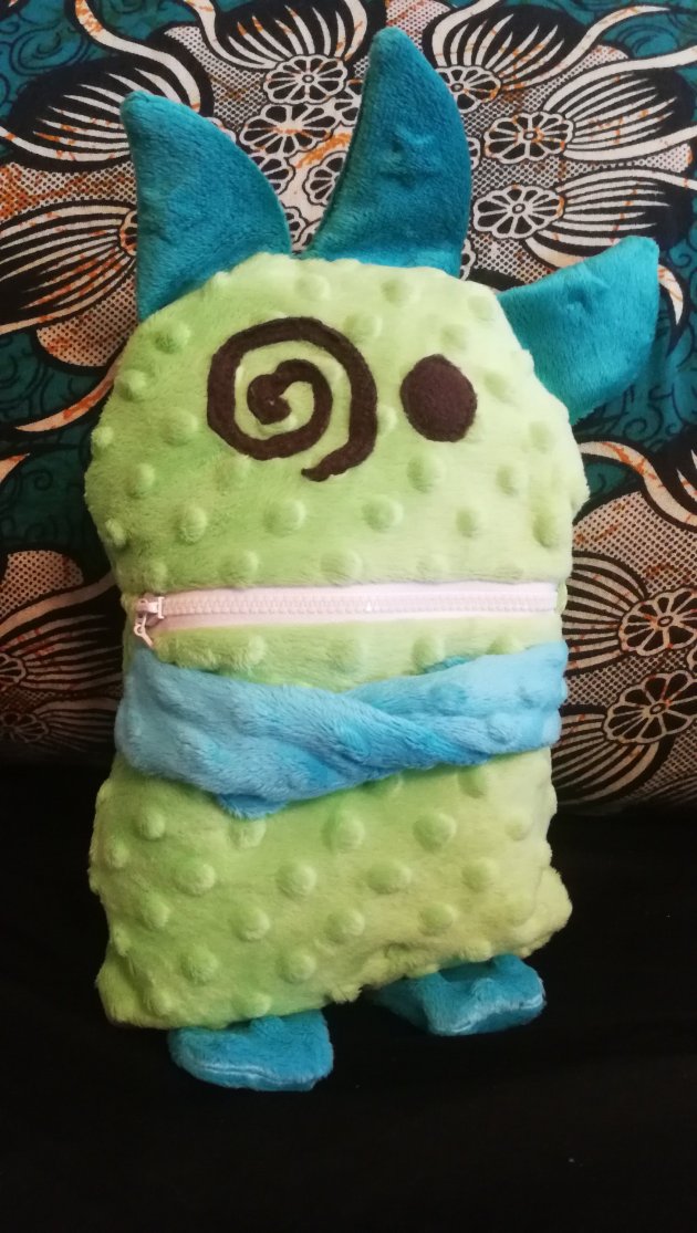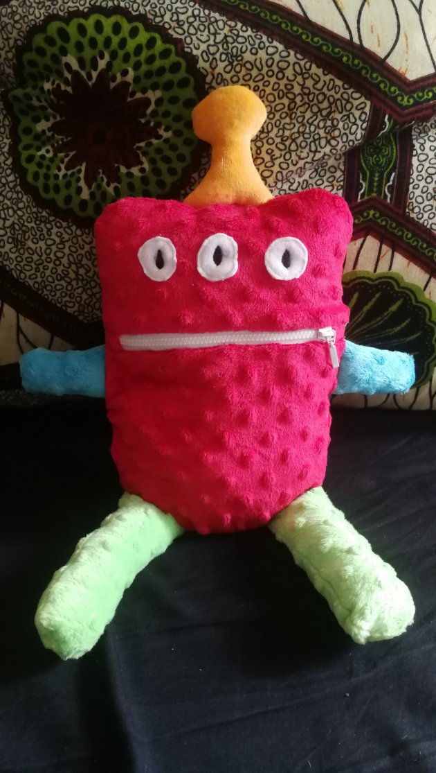 Ça a été le point de départ de mon projet de rentrée dans ma classe de MS-GS. Du coup, je me suis dit : « trop bien ! Je vais coudre un monstre mange-émotions, avec un ventre hublot pour voir comment il se sent« . Si vous ne connaissez pas l’album, au début de l’histoire le monstre est barbouillé (multicolore), il apprend ensuite à trier ses émotions qui ont différentes couleurs : jaune pour la joie, bleu pour la tristesse, rouge pour la colère, noir pour la peur, vert pour la sérénité et rose pour l’amour. Avec un hublot, on peut voir la couleur des objets qu’on lui fait manger et déterminer son état émotionnel.