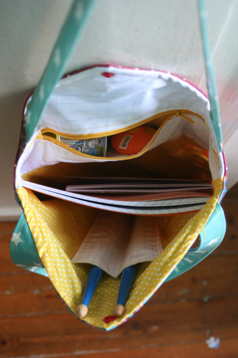 Modèle issu du livre « Cartables et sacs à dos » d’Edwige Foissac (dont le troisième livre « L’Univers en Couture de la Petite Cabane de Mavada » devrait arriver dans ma boîte la semaine prochaine 🙂 ).