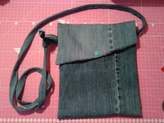 J’ai finalement opté pour l’idée d’Audrey, sur la page FB : un sac qui puisse servir de sac de couchage, avec une poche pour ranger le carnet de voyage. Le haut est fermé par une pression aimantée.