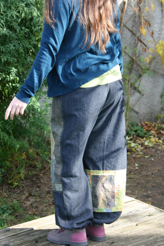 Merci aussi à Cathy alias Auréole, sur FB, dont les créations « patchées » m’ont inspirée et à qui j’ai beaucoup pensé en cousant ce pantalon. Si jamais je pouvais avoir le quart de la moitié du huitième de son talent !